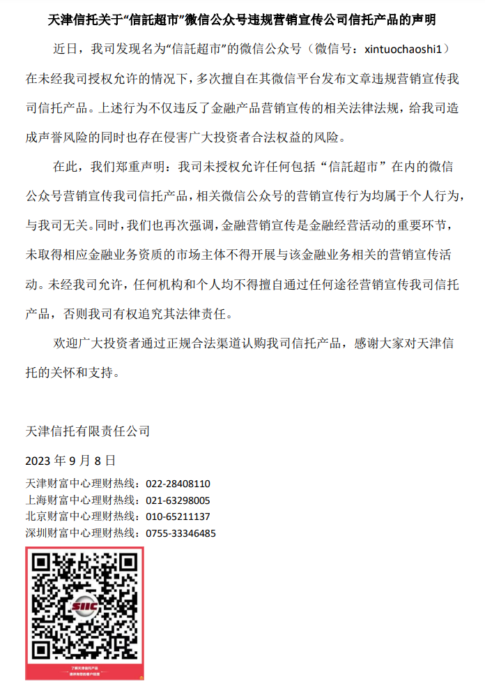 關(guān)于“信託超市”微信公眾號違規(guī)營銷宣傳公司信托產(chǎn)品的聲明