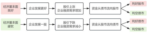 經(jīng)濟基本面通常會影響企業(yè)經(jīng)營狀況,從而影響股票市場走勢。隨著股市變化帶動資金流向變化,進一步對債券市場產(chǎn)生影響。