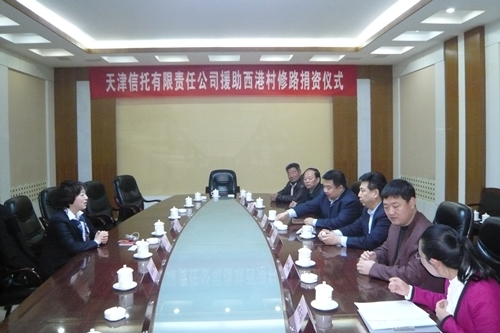 天津信托有限責(zé)任公司響應(yīng)市文明辦號召,與靜??h西港村開展精神文明“雙百共建”活動,公司出資30萬元援助西港村村街建設(shè)。為了真正給西港村提供實(shí)實(shí)在在的幫助,公司與村黨支部多次溝通了解需求,并進(jìn)行實(shí)地考察確定援助項(xiàng)目,為保證做到資金??顚S茫o??h委宣傳部、沿莊鎮(zhèn)黨委、西港村和公司四方簽訂項(xiàng)目實(shí)施方案,明確工程招標(biāo)、施工監(jiān)督、資金保障等四方的權(quán)利和義務(wù),保證了資金及時到位和??顚S?。圖為援助項(xiàng)目實(shí)施方案簽字儀式和西港村村民代表送的錦旗。