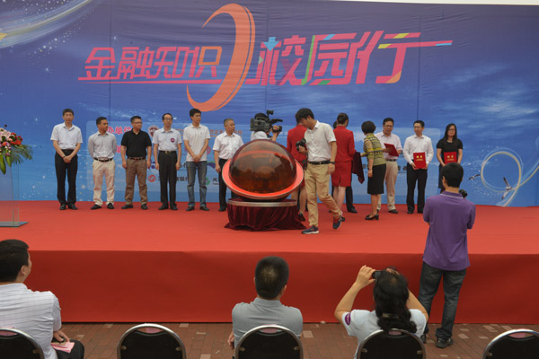 校園行活動于上午9時正式啟動,首先分別由天津市銀監(jiān)局領導和南開大學領導講話致開場辭,并由南開大學楊克欣副校長主持進行了 “大學生實踐導師”聘任儀式,我公司副總經(jīng)理韓立新在儀式中接受了受聘聘書,隨后由銀監(jiān)局、銀行業(yè)協(xié)會及校方領導啟動觸摸球,宣布活動開始。