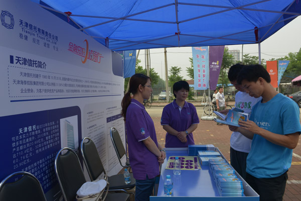 2013年6月23日,由天津市銀監(jiān)局主辦,全市12家銀行業(yè)金融機構(gòu)在南開大學共同開展了“金融知識校園行”活動。天津信托作為受邀的唯一一家非銀行金融機構(gòu),參加了此次活動。