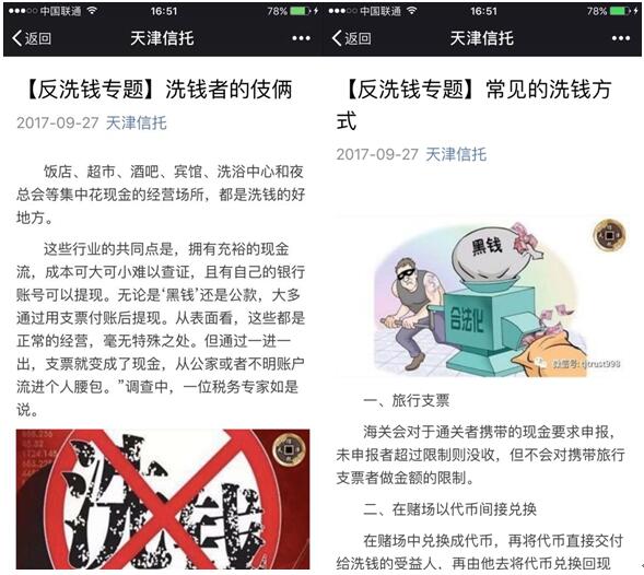 按照人民銀行天津分行的相關文件精神,2017年10月,天津信托組織開展了宣傳主題為“遏制洗錢犯罪,維護穩(wěn)定發(fā)展”的反洗錢主題宣傳活動。本次活動從普及反洗錢知識、保護自身安全、防范洗錢風險等幾個方面向客戶及公眾進行宣傳教育,提高公眾的反洗錢意識,引導公眾支持反洗錢工作,履行公司的反洗錢義務。