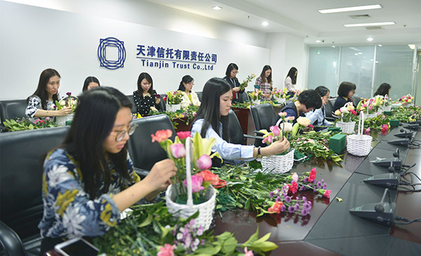 近日,為慶祝三八國際勞動婦女節(jié),豐富女員工生活,天津信托工會組織了“天信女神花藝課堂”插花活動。