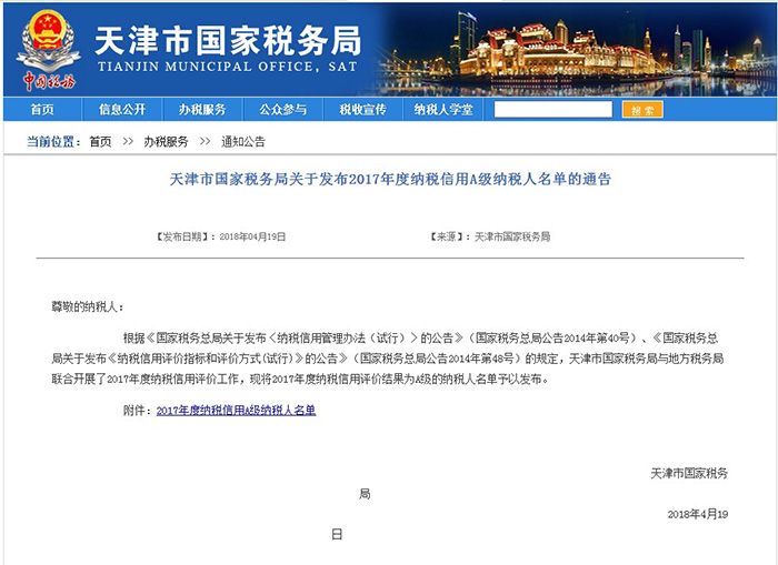 日前,天津信托接到稅務(wù)部門通知,公司被評(píng)為2017年度A級(jí)納稅人。至此,公司已經(jīng)連續(xù)六年被國家稅務(wù)局評(píng)為A級(jí)納稅人,為公司良好的企業(yè)形象增添了光彩。