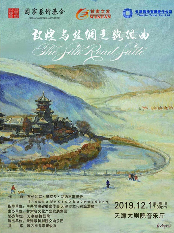 2019年12月1日晚,由甘肅省委宣傳部、天津市文化和旅游局指導(dǎo),甘肅省文化產(chǎn)業(yè)發(fā)展集團(tuán)主辦,天津信托冠名贊助的交響樂《敦煌與絲綢之路組曲》在天津大劇院音樂廳成功上演。該組曲由俄羅斯著名作曲家布列沙克創(chuàng)作,著名指揮家董俊杰執(zhí)棒天津歌舞劇院交響樂團(tuán)精彩呈現(xiàn)。該組曲用國際通用音樂語言詮釋絲綢之路和敦煌文化,實(shí)踐“中國元素,世界表達(dá)”,提升了中國文化的國際影響力,以宏大的背景、鮮明的主題、動(dòng)聽的旋律成功入選2019年國家藝術(shù)基金資助項(xiàng)目。
