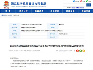 2020年6月,天津市國家稅務(wù)局網(wǎng)站公布了2019年度納稅信用評價結(jié)果為A的納稅人名單,天津信托連續(xù)第8年被評為A級納稅人。 多年...